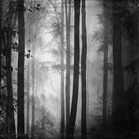Loofbos in ochtendmist - fotografie bewerkt met texturen