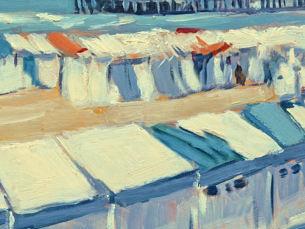 Kraakwit geschilderde strandhuisjes blaken in de zomerse zon. Blankenberge aan Zee is een fantastisch vintage typish Vlaamse badplaats.