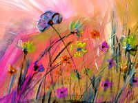 Een kleurrijk en expressief bloemschilderij voor de woonruimte met grafische elementen. Het straalt optimisme en vrolijkheid uit. De schoonheid van de natuur biedt steeds weer onuitputtelijke inspiratiebronnen.