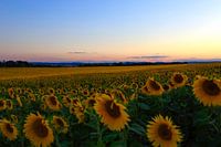 Schilderachtige zonnebloemen in een zomers landschap in de