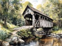 Koop dit schilderij Zomers Rustiek: Houten Overdekte Brug in Zomerlandschap van Retrotimes als reproductie op canvas, aluminium dibond, (ingelijste) fotoprint, behang en ArtFrame, op maat geprint in Fine-Art kwaliteit.