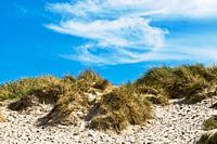 Dit schijnbaar paradijselijke hoge zandduin met een helderblauwe lucht ontdekte ik op het strand van Henne op Jutland in Denemarken.