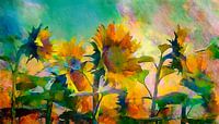 Een veld met zonnebloemen in het Franse landschap in impressionistische schilderstijl.