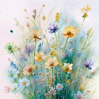 Vrolijk en verfijnd Bloemen schilderij in frisse pastelkeuren.