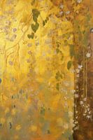 Dit werk straalt de warmte en helderheid van een zomerse dag uit, met delicate bloemen en bladeren die lijken te dansen in het zonlicht. De overheersende goudgele tinten worden subtiel geaccentueerd door groene en witte details, waardoor een gevoel van harmonie en rust ontstaat. De fijne lijnen en de zachte kleurovergangen geven het…