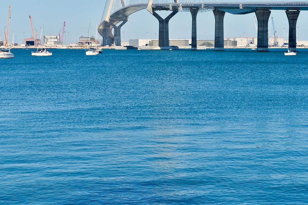 Koop de foto Zomerse baai van Cádiz met Puente de la Pepa van Silva Wischeropp op canvas, aluminium dibond, (ingelijste) fotoprint, behang en ArtFrame, op maat geprint in Fine-Art kwaliteit.