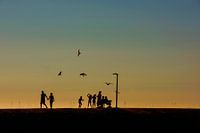 Levendige zomerse dag in Zeeland. Gemaakt op de dijk van West Kapelle bij zonsondergang. Op de achtergrond windmolens.