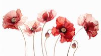 Een zomerse klaprozen aquarel in prachtig rood tegen een witte achtergrond. De fragiliteit van de bloembladeren komen in het schilderij goed naar voren.