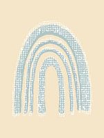 Een abstract en modern Mid Century Modern schilderij op neutraal beige in Scandinavische stijl. Een rustgevende abstractie met geometrische vormen en regenbogen om te ontspannen.
