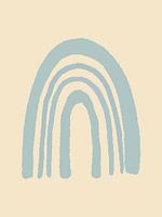 Een abstract en modern Mid Century Modern schilderij op neutraal beige in Scandinavische stijl. Een rustgevende abstractie met geometrische vormen en regenbogen om te ontspannen.