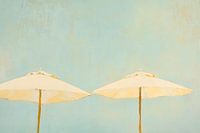 Zachte pastelkleuren omlijsten twee elegante parasols en geven de kijker een vleugje zomer en ontspanning. De heldere hemel straalt rust uit, terwijl het zachte spel van licht en schaduw de parasols zachtjes streelt. Een moment van rust dat uitnodigt tot dromen en doet verlangen naar warmere dagen.