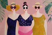 Drie dames. Drie zonnebrillen. Eén missie: stijlvol blijven in 35 graden. Met hun zwemkleding, hoeden en geen-zin-in-stranddrukte-blik zijn ze klaar voor een middag cocktails, schaduw en goede roddels. Een ode aan vriendschap, zelfspot en zomerpret.