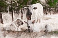 Koop dit koeien kunstwerk Zomerse weelde met rustende koeien in een vintage kleurenpallet van Studio Mirabelle op canvas, aluminium dibond, (ingelijste) fotoprint, behang en ArtFrame, op maat geprint in Fine-Art kwaliteit.