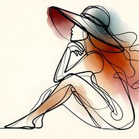 Ontdek de kracht van eenvoud met deze minimalistische aquarel van een zittende vrouw, subtiel gehuld in zachte kleuren en strakke lijnen. Haar grote hoed werpt een mysterieuze schaduw, die elegantie en rust uitstraalt. De verfijnde penseelvoering vangt de essentie van vorm en houding zonder overdaad. Perfect voor liefhebbers van serene, moderne kunst. Een tijdloos werk dat stilte en stijl verenigt.