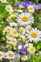 Een fotocombinatie waarin ik voor Margrieten heb verwerkt. Ik vind het zulke vrolijker bloemen. Het zijn wilde Margrieten en zachtgele Margrieten. Verder is er nog paars en blauw te zien van Campanula en korenbloemen. Mijn tuin probeer ik altijd vol te proppen met zoveel mogelijk bloemen. Een paradijs voor mens en dier.