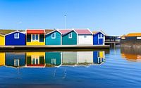 Kleurrijke badhuizen weerspiegeld in het water