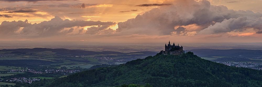Gezien vanaf de uitkijkpost Zellerhorn vormen de laatste zonnestralen van de dag een schitterend decor voor dit indrukwekkende vestingkasteel