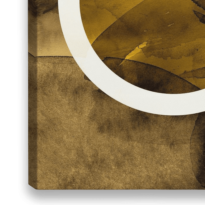 Mijn werk toont abstracte vormen in zachte maar zeer trendy geelbruin-gouden kleur op een beige achtergrond.
