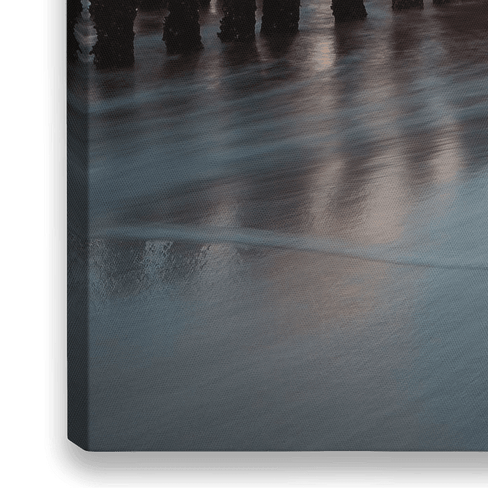 terwijl de zon langzaam achter de golfbrekers verdween zorgde het opkomende water in combinatie van een lange sluitertijd voor een mooi effect.