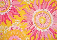 De combinatie van afgeronde ovalen en cirkels creëert een gevoel van continuïteit en balans, wat bijdraagt aan de harmonieuze uitstraling van het ontwerp. Dit kunstwerk, met zijn naadloze patroon, is veelzijdig en kan zowel als achtergrond voor digitale apparaten als voor fysieke posters worden gebruikt. De heldere kleuren en eenvoudige vormen maken het een tijdloze toevoeging aan elke ruimte, geschikt voor iedereen die houdt van een combinatie van modern design en natuurlijke elementen.