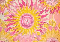 De combinatie van afgeronde ovalen en cirkels creëert een gevoel van continuïteit en balans, wat bijdraagt aan de harmonieuze uitstraling van het ontwerp. Dit kunstwerk, met zijn naadloze patroon, is veelzijdig en kan zowel als achtergrond voor digitale apparaten als voor fysieke posters worden gebruikt. De heldere kleuren en eenvoudige vormen maken het een tijdloze toevoeging aan elke ruimte, geschikt voor iedereen die houdt van een combinatie van modern design en natuurlijke elementen.