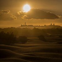 Aan het eind van de middag gaat de zon onder bij Maspalomas, Gran Canaria.