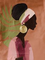 Een elegant portret vol warmte en karakter. De zachte penseelstreken en aardse tinten brengen een gevoel van rust en natuurlijke schoonheid, terwijl het goud subtiel luxe toevoegt. Perfect voor een interieur met een bohemian of artistieke sfeer, dit kunstwerk voegt verfijning toe zonder op te dringen.