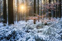 Zon in het winterse bos van Daniela Beyer