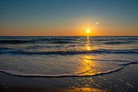 De zon is bijna onder bij strand de Voordijk tussen Callantsoog en Groote Keeten op 19 mei 2021