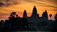 Zon opkomst bij de beroemde Angkor Wat tempel bij Siem Riep in Cambodja