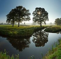 Zon straalt door de bomen, spiegeling,reflectie, Haarzuilens, Utrecht, Nederland, Holland