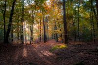 Mooi sfeervolle herfstfoto waarbij de zon door de bomen door schijnt. Het Panbos is een natuurgebied aan de noordzijde van de Amersfoortseweg N237 ten westen van Bosch en Duin aan de rand van De Bilt.