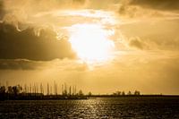 salute foto van een jachtwerf met tegenlicht in mooie kleuren.