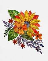 Bloemenillustratie met aquarel en inkt. Zonnebloem, bloemen en takken.