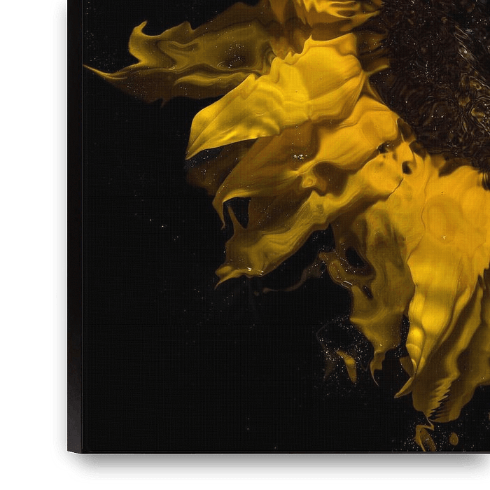 Koop dit bloemen kunstwerk "Zonnebloem onder water" van Marjolijn van den Berg op canvas, aluminium dibond, (ingelijste) fotoprint, behang en ArtFrame, op maat geprint in Fine-Art kwaliteit.
