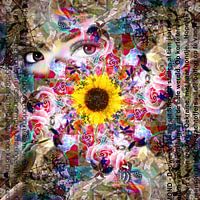 De zonnebloem staat hier symbool voor gerechtigheid, hoop en vrede.
