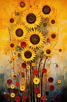 Dit werk van een zonnebloem vangt de levendige schoonheid van deze iconische bloem in volle bloei. De felle gele en groene tinten stralen warmte en vrolijkheid uit, waardoor het een echte blikvanger is in elk interieur. De gedetailleerde weergave van de bloembladen en het hart van de zonnebloem geeft een gevoel van diepte en leven, wat perfect aansluit bij een natuurlijke of botanische inrichting.