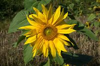 Mooie gele zonnebloem in bloei.