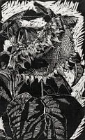 Tekening, illustratie of prent van een bloem in zwart wit.