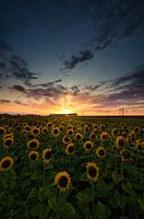 Dit zonnebloem veld staat langs de spoorlijn Hoorn-Obdam .Op deze 13 juli 2025 zag ik dat er nog een mooie zonsondergang zat aan te komen. Dus toch maar op de fiets er weer naar toe om deze keer , wanneer de trein komt , een foto te maken in portretstand. Dit is een test foto nog in de landschapstand.