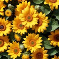 Mooi beeld van zonnebloemen. Digitaal beeld, bewerkt. Net niet meer de gewone werkelijkheid...