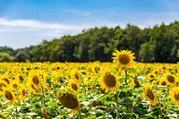 Veld met gigantische zonnebloemen, foto genomen in de Loire vallei.