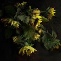 Zonnebloemen uit mijn tuin. In gemengde techniek.
