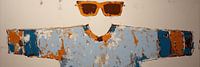 Details: mens, zonnebril, blauw, bruin, roest, shirt, abstract, kunst, industrieel,…