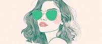 Met zijn ontspannen uitdrukking en stijlvolle groene zonnebril straalt deze illustratie een luchtige elegantie uit. De zachte kleuren en gebogen lijnen geven het een moderne lichtheid, perfect voor een slaapkamer of woonkamer, waar het een sfeer van chill en stijl creëert.