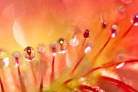 Op deze macrofoto is een zeer klein detail te zien van een zonnedauwplant. Op de achtergrond is veel bokeh zichtbaar, veroorzaakt door alle andere bolletjes van de plant en is slechts één bolletje op de voorgrond scherp.