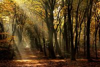 Het zonlicht schijnend door de dansende bomen in het Speulderbos