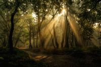 Zo mysterieus het bos in de mist is, zo magisch wordt het wanneer de eerste zonnestralen een weg door die mist weten te vinden. Prachtige harpen van licht laten het bos ontwaken in een spel van licht en donker.