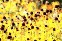 Een prachtige zonnige gele zee van coneflowers van het geslacht Goldsturm. Gefotografeerd en bewerkt met verschillende filters om een impressionistisch schilderij te maken.