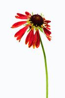 Een macro opname van een zonnehoed tegen een witte achtergrond. Voor de ze achtergrond gebruik in meestal een stuk wit plexiglas op een mooie zonnige dag. De witte achtergrond zorgt ervoor dat we alleen de bloem zien en de details veel mooier uitkomen omdat er geen afleiding is van omgeving of achtergrond.